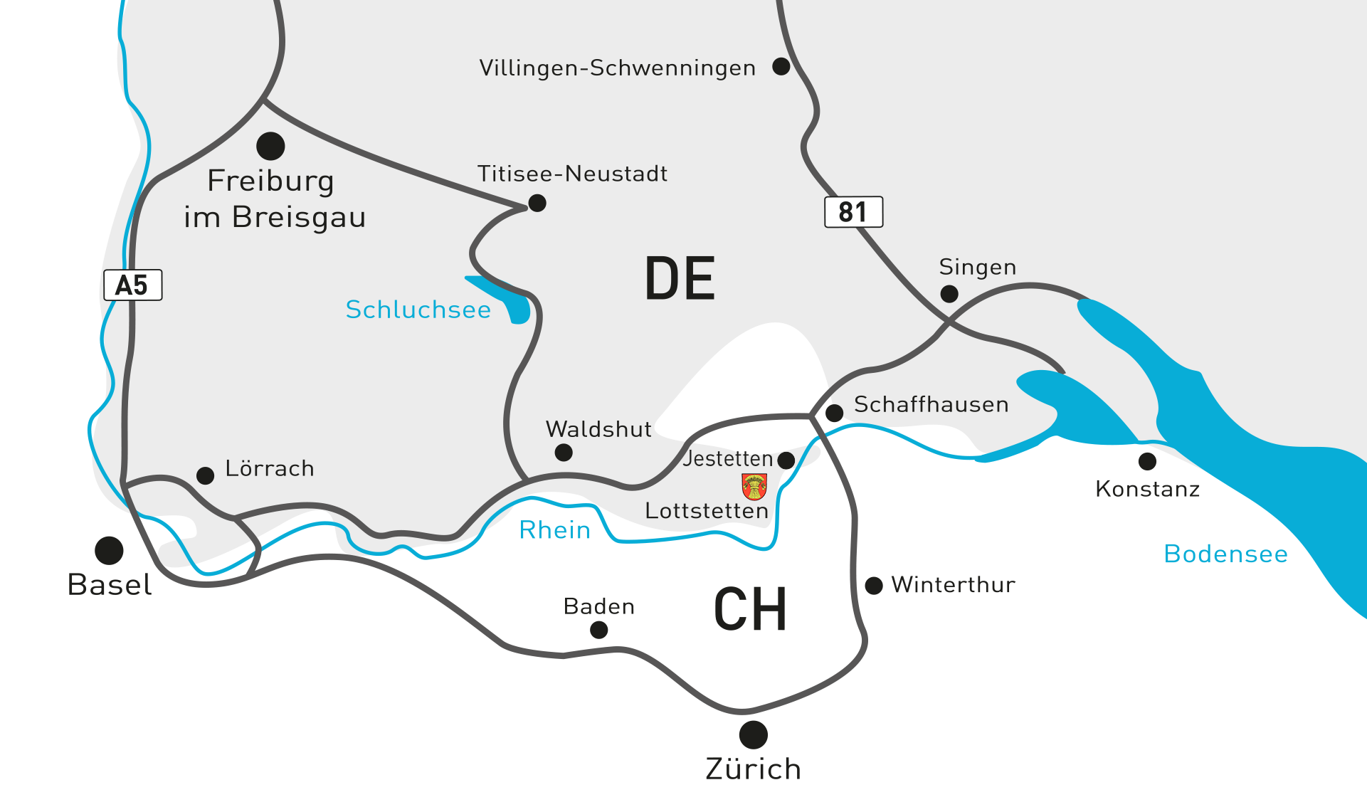 Der Wohnmobilstellplatz liegt unterhalb der Gemeindehalle am Ortseingang. In unmittelbarer Nähe sind viele Einkaufsmöglichkeiten vorhanden. Oberhalb des Stellplatzes ist eine Bushaltestelle vor Ort. In die angrenzende Schweiz sind es nur drei Fahrminuten.